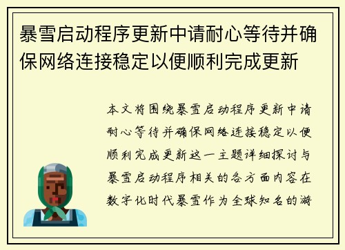 暴雪启动程序更新中请耐心等待并确保网络连接稳定以便顺利完成更新